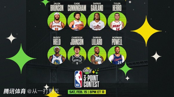 三分球大赛依然有8位球员参赛,分别是布伦森、坎宁安、加兰、希罗、希尔德、卡姆-约翰逊、利拉德、鲍威尔。其中利拉德是两届三分大赛冠军得主,他是奔着夺冠来的。