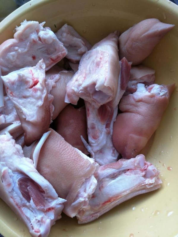 1.洗干净猪蹄,用水煮30分,可以倒入料酒,卤料,盐,酱油,醋,鲜姜!