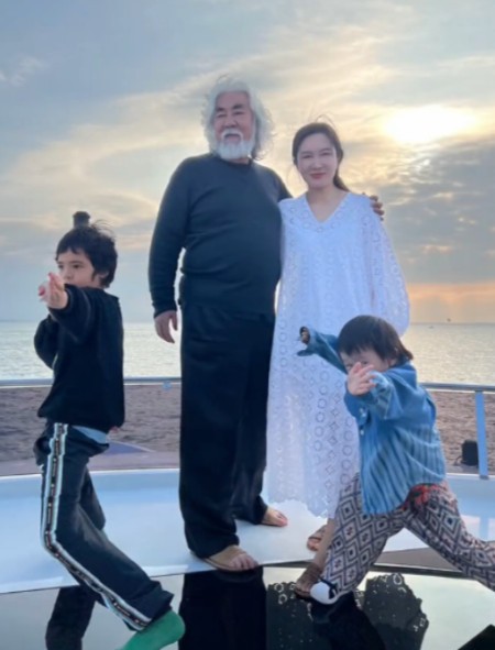张纪中一家七口外出旅游,一同乘坐游艇外出度假,享受着美好的时光。这个家庭虽然年龄跨度较大,但和睦相处,幸福甜蜜。他们的旅途中,小4岁的岳父和张纪中坐在一起,虽然年龄差距很大,但两人相互尊敬,互相欣赏,就像是两代人。