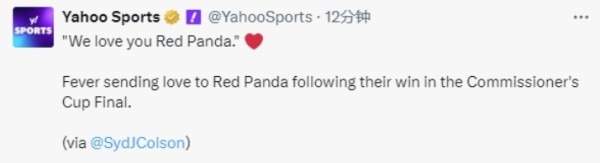 北京时间7月2日,WNBA总裁杯决赛,中国杂技演员“红熊猫”(牛蓉)在进行演出时意外从车上跌落到地板,随后被工作人员用轮椅推离球馆。在赛后,夺冠的印第安纳狂热队球员们在更衣室内集体向“红熊猫”送上祝福。