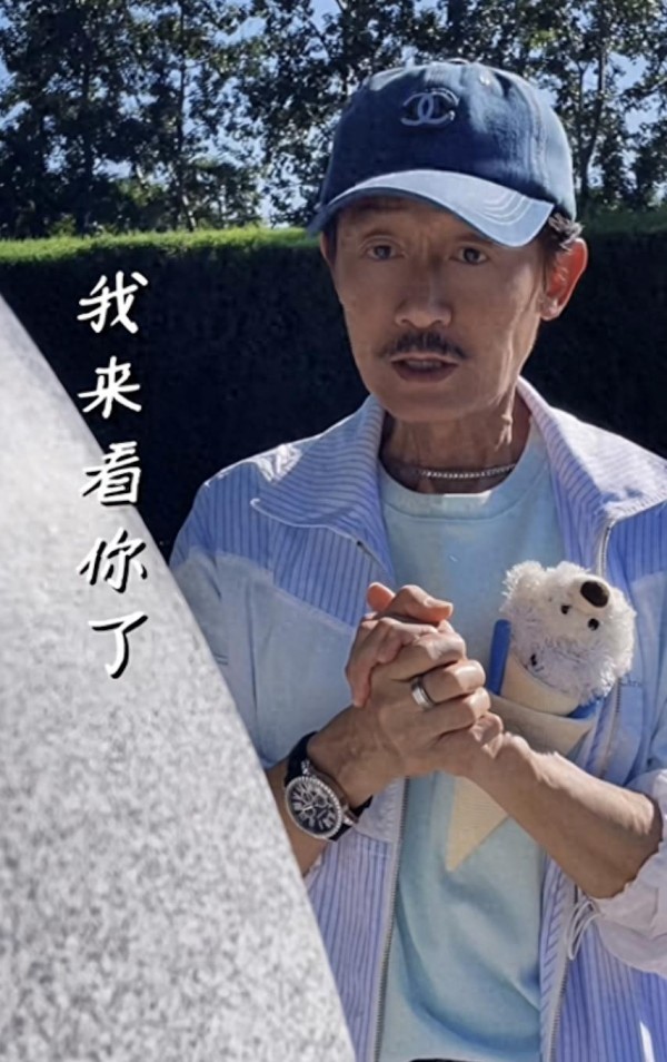 72岁香港导演重阳前悼念周海媚,墓前唱歌放老影片,周围放满鲜花