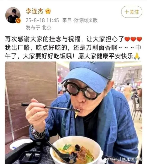 面对健康问题,李连杰选择了于社交平台上展示真实的自己。