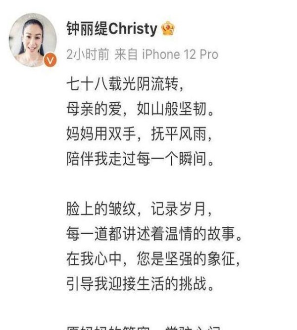 钟丽缇既是个美丽偶像,也是个有温度的家庭成员。