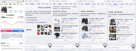 (图:以“滑雪服”为例,AI行情呈现热度价格趋势,AI智搜定制选购方案)