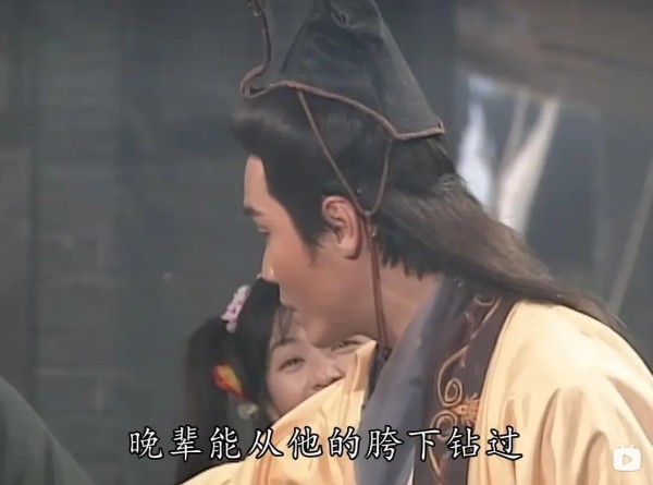 细节改动非常多,我们只聚焦一个细节,可以明显地看出两版创作方向的不同。小说中原有一节,黄药师威压完颜洪烈一伙,让他们受胯下之辱。笔调调侃恢谐,令人痛快淋漓。对待这个细节时两版各有心计:83版(38集)让王爷、杨康、梁子翁先走了,只剩下沙通天、侯通海发现密室,安排黄药师出场,钻了裤裆。明显有放水之嫌。94版(21集)拍了个十足十,更在文本的基础上塑造各人钻裤裆的形象。杨康首当其冲,台面话一套接一套,大拍黄药师马屁,钻了;完颜洪烈引韩信自喻,大谈胯辱当荣,钻了;其余大内高手一言不发,全钻了。黄药师牌面拉满。