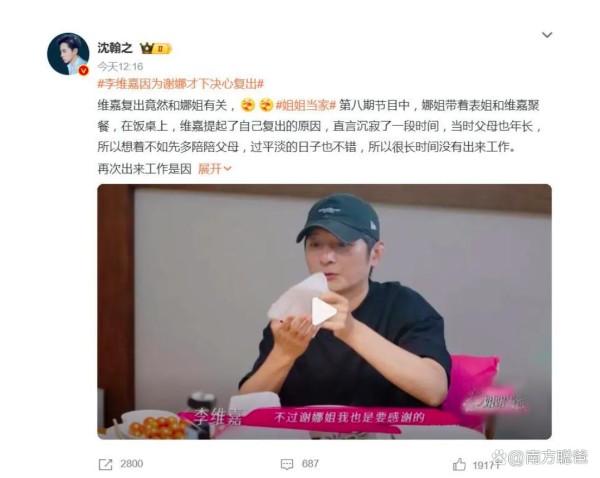 李维嘉称“身边有这样的朋友,真是不容易”,谢娜是自己回归的重要支撑。