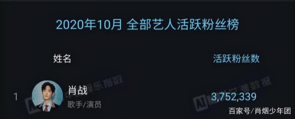 而另一个榜单,也完美地证实了这一点,在公布的2020年第44周及10月的艺人活跃粉丝榜中,肖战也再次获得了双榜冠军,分别是周榜冠军,与月榜冠军,加上人气榜的双冠军,可以说一次性连续拿下四个权威榜单的第一