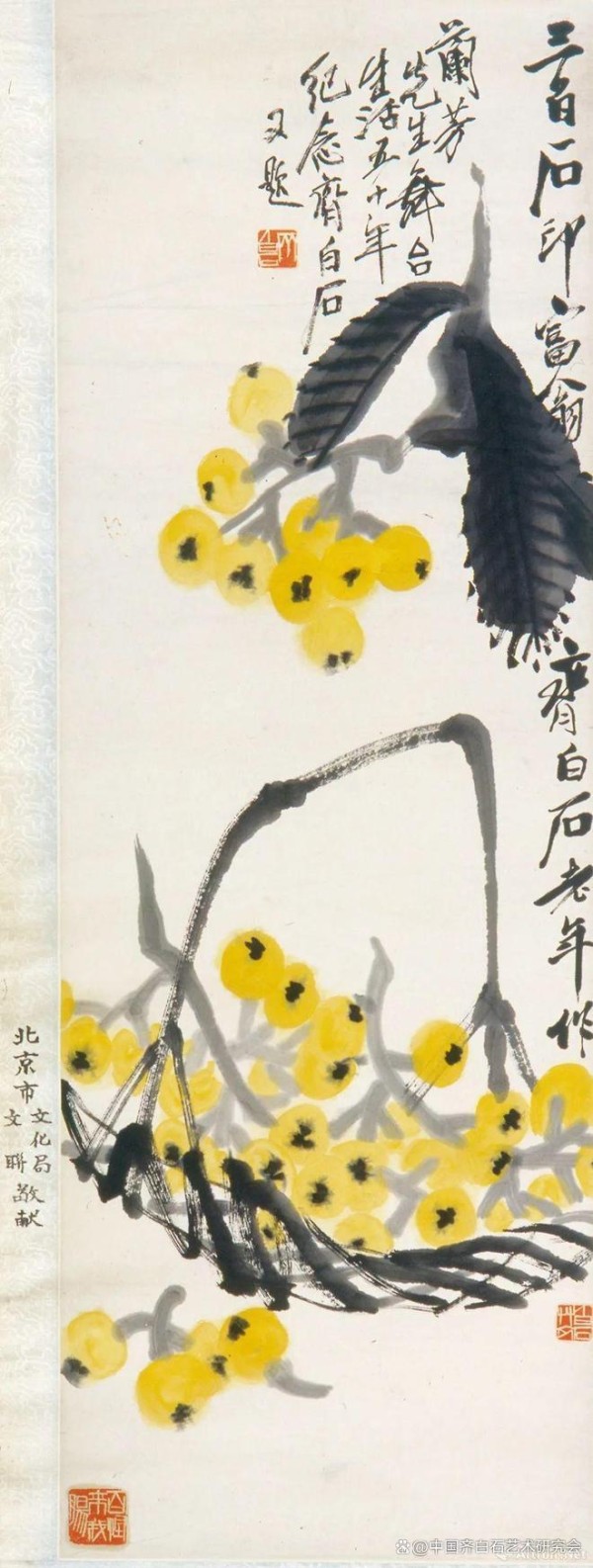 △ 枇杷 齐白石 1955年 103×34.5cm 纸本设色 梅兰芳纪念馆藏