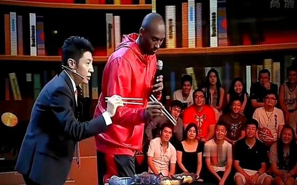 比赛后,科比弯腰捡球,神情专注,吃饭用筷子都比不少人熟练,真是“入乡随俗”。