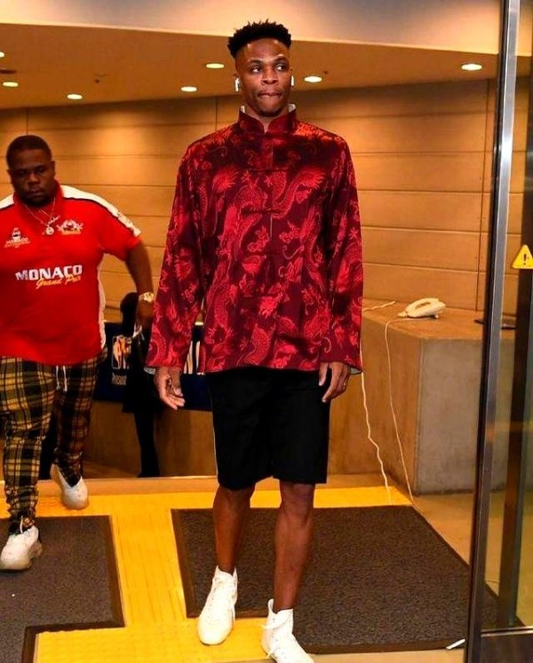 有一次莫雷事件闹得沸沸扬扬,外头风言风语不少,威少愣是顶着压力穿着红色唐装参加日本发布会。