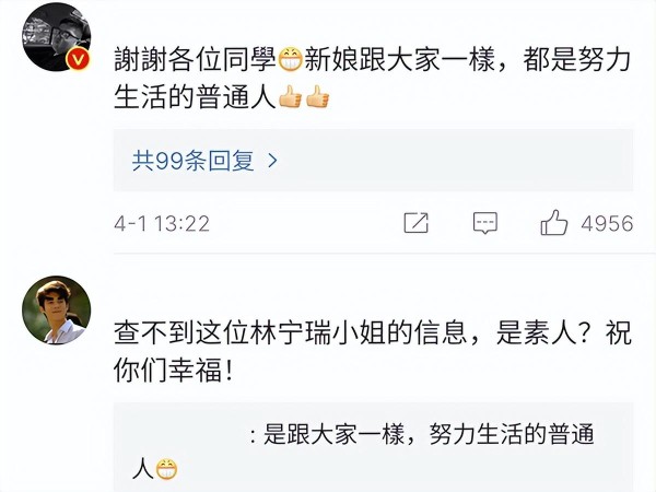 郝劭文表示未婚妻只是普通人并非圈内人士,不过这根本满足不了网友们的好奇心,有网友扒出了郝劭文未婚妻的身份,而郝劭文也在评论区留言里不小心透露出未婚妻的信息。