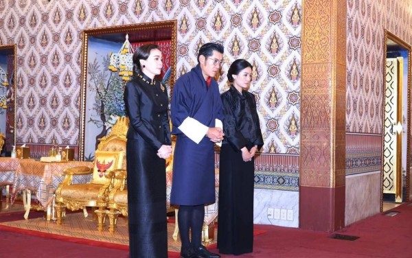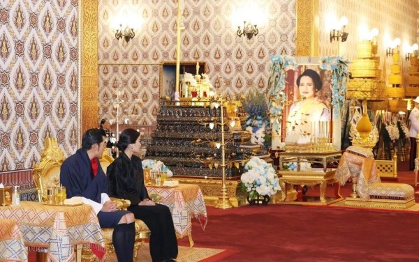 不丹国王吉格梅·凯萨尔·纳姆耶尔·旺楚克和王后陛下专程飞到曼谷,为逝世的泰国诗丽吉王太后表达哀悼之意,规格可是相当高的王室级别。