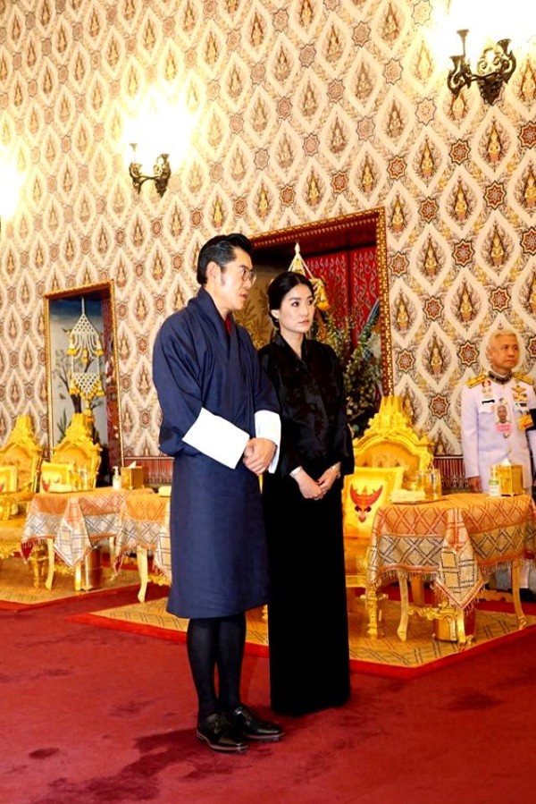 这不,10月29日,不丹国王旺楚克和王后吉增·佩玛专程赶到曼谷,为泰国王太后诗丽吉的离世送上最后的哀意。