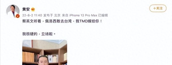 黄安微博指蔡英文全家一半是外国籍:爱台爱个屁