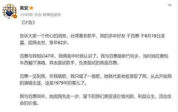 前两天,他给千百惠写的那篇悼文,读得我一紧一紧的。你说,四十七年的交情,可不是说说而已,一个字一个细节都留心着——从当年千百惠餐厅面试录用的小插曲,到这几十年里彼此陪伴的点点滴滴,黄安几乎掰开揉碎讲了出来。最难得的是什么?没胡乱写点什么唱衰的、也没拿旧怨来蹭热度,他就这么实实在在地在悼文里念叨着那些猝不及防的温暖,像雪中送炭的关怀,像冬日里的暖阳。这样真情流露的文字,在现在这吃瓜成风的娱乐圈,简直是稀罕得就像绿洲里的泉水。