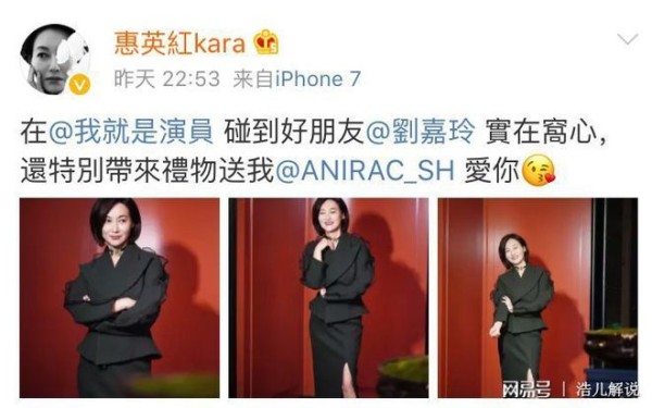 而同为香港女演员的刘嘉玲,咖位也不低。不仅在香港获得了香港金像奖的最佳女主角,在内地也曾经斩获金鸡奖最佳女主角,所以刘嘉玲也是一位地位崇高的影后级别的演员。有些网友也调侃到,都是影后谁怕谁。可是在最近的节目中,两人同台,没有看到刘嘉玲和惠英红有过任何的互动,小编觉得,这有可能是视频剪辑的问题,毕竟,刘嘉玲和惠英红是多年的老朋友了,而惠英红也在微博中与刘嘉玲频繁互动,称这次在节目中碰到了好朋友刘嘉玲,实在开心。