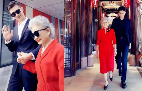 这对看起来犹如明星般养眼的祖孙是网络红人,银发奶奶今年已经90岁高龄了,高大帅气的孙子经常陪伴在奶奶身边,祖孙两人一出街就会吸引众多目光。