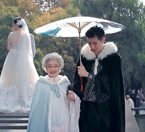 90岁奶奶宛如公主,190孙子甘做骑士,超养眼组合诠释另类祖孙情