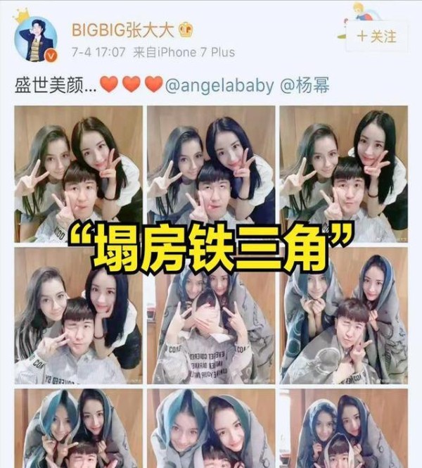 Angelababy杨颖作为张大大的另一位好朋友,这次也躲不过去了。