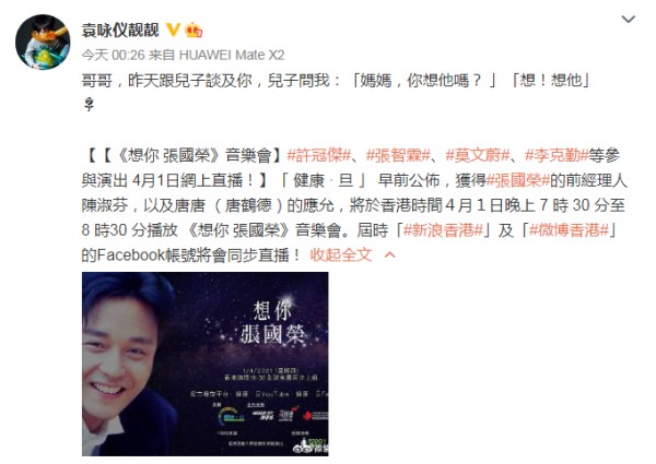 而今年的4月1日愚人节,正好是张国荣逝世的18周年,包括袁咏仪、宁静、莫文蔚、罗晋、尹正、樊少皇、何晟铭、