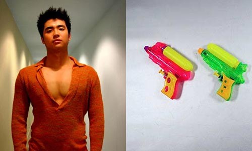 别看现在的吴鹏一副酷酷的样子,小时候的他可是个相当调皮的男孩子。水枪这种简易可行的平民游戏,他一定非常熟悉,尤其是在夏天的傍晚,可以找很多小孩儿一起,每个人都拿一只水枪来对战,淋得满身都是水,再回家痛痛快快洗个澡,这就是男孩子的童年。细细算起来,这大概可以做现在真人CS游戏的鼻祖了吧。