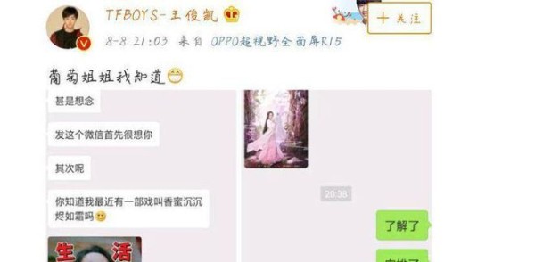 王俊凯和她聊天记录曝光,一句“我想你了”粉丝瞬间吃醋!