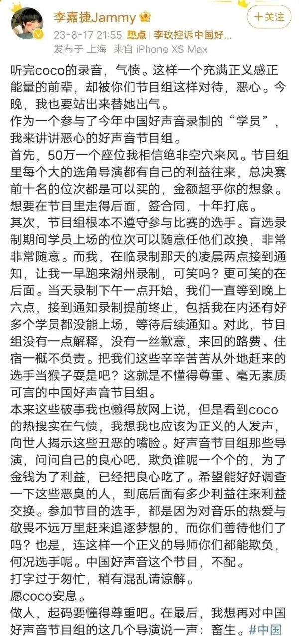 同期选手很快证实了李玟的说法,李嘉捷一直都知道好声音非常傲慢,里面鱼龙混杂,却没曾想连前辈都不放在眼里,真希望有人好好调查一下,整治这帮丑恶的资本。