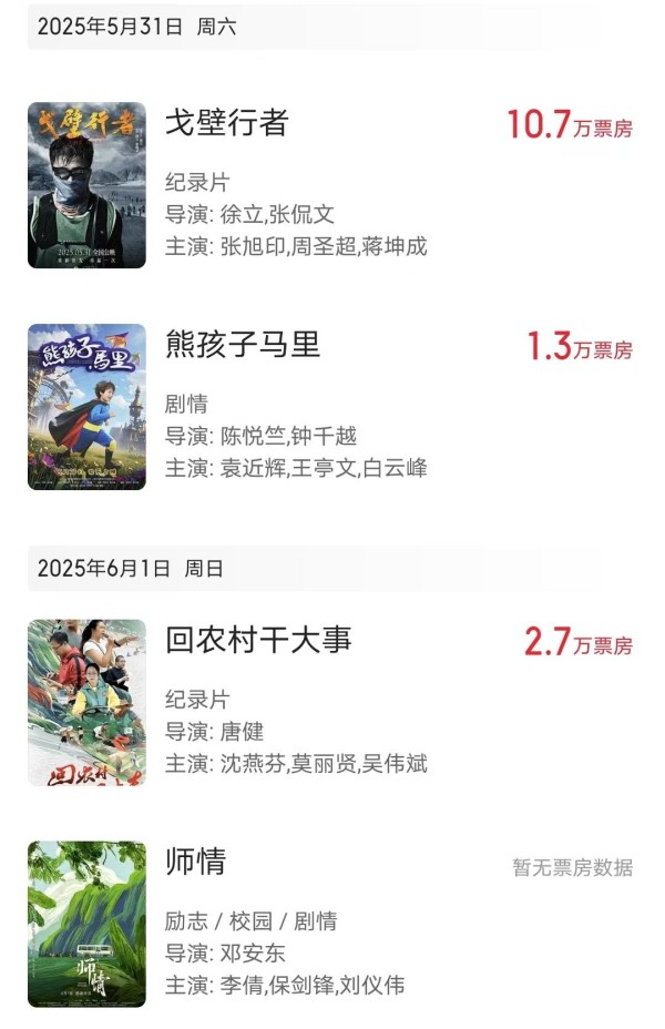 第一天,《师情》直接输给了同日上映的《回农村干大事》,甚至还不及年度最惨影片《星际变种》。据国内的电影平台所显示,它的票房数据为零,也就是说根本就没有观众看过此片。