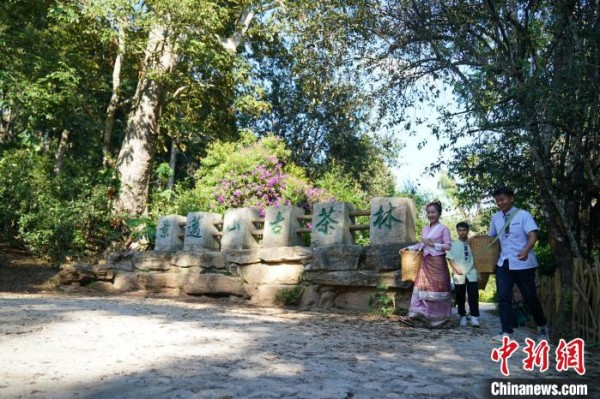 云南省普洱市澜沧县景迈山上采茶归来的傣族青年。 中新网记者 刘冉阳 摄