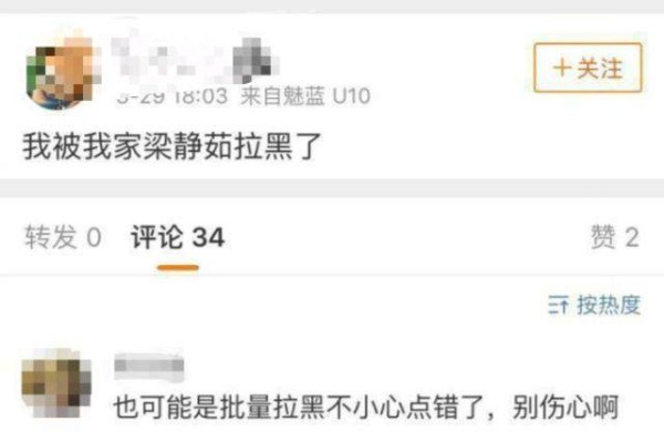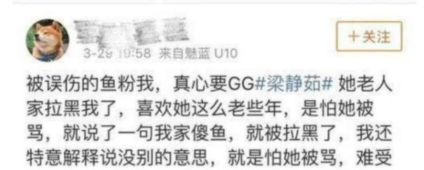 看到这么多网友粉丝无端攻击自己的好友,随后梁静茹删除该微博,并拉黑了所有在下面说三道四的人,其中包括关注了她多年的老粉。