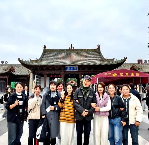 陈佩斯现身运城关帝庙,与刘芳菲亲密游览,被女粉丝们挽手合影