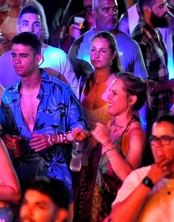 她在巴西参加个派对,跟个穿蓝色夏威夷衬衫的小伙子搂搂抱抱,还被拍到“热情接吻”。