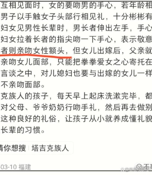 有网民进一步查找了当地的传统惯例,发现男性长辈确实被允许亲吻女性的额头,但这种行为仅限于女儿尚未出嫁的阶段。