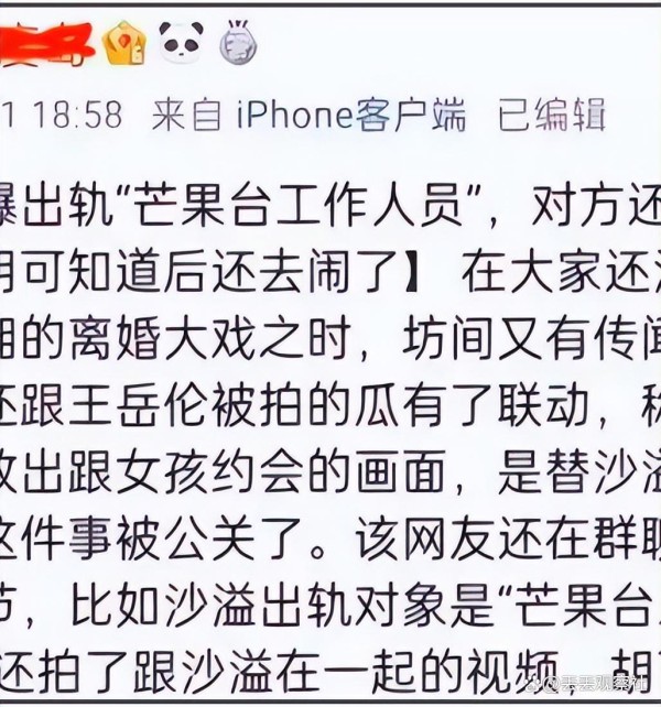 根据早前网络爆料的消息,沙溢被指与芒果台内部员工存在不当关系,这一传闻在社交媒体上引发热议。