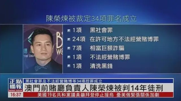 2024年11月28日,澳门终审法院裁定陈荣炼判处13年刑期,罚金由24亿港元减至18亿港元。