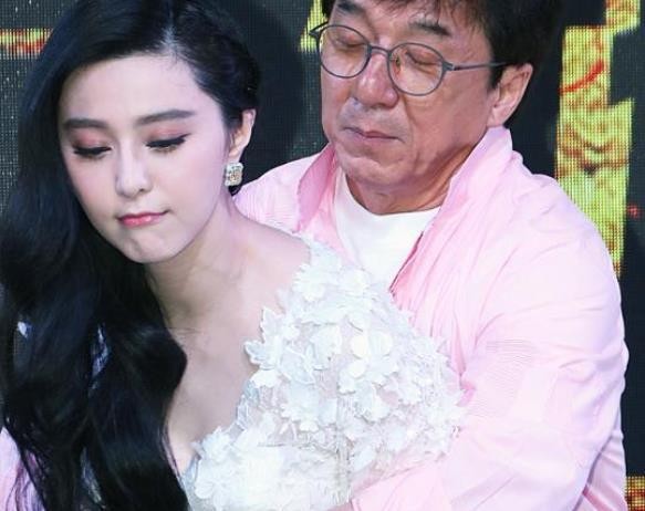 图中是成龙从后面的猛地抱住了范冰冰,而两个人的表情也是十分微妙,范冰冰的脸上挂着笑容而成龙的脸上却有一点猥琐的气息、