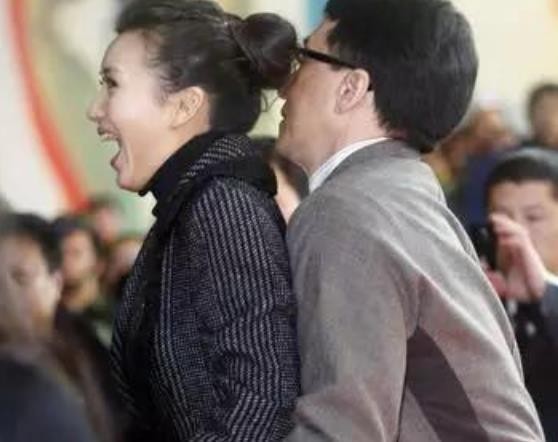 图中成龙十分的高兴,一双手托着女神的脸颊,看上去两人的关系十分的要好,网友:好一招“龙爪手”。