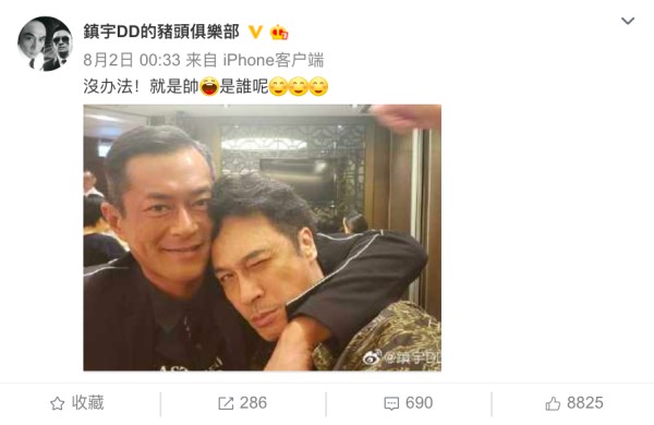 不仅如此,在这张照片的上面,吴镇宇还说“没办法,就是帅,是谁呢”。很多网友也在这条消息下面留言,表示两个男神都太帅了。因为我网友非常搞怪的留言表示,没想到吴镇宇还有这样一面,感觉好像知道了男神不为人知的一面。不过相信古天乐和吴镇宇两个人在私底下也是非常的有趣的。