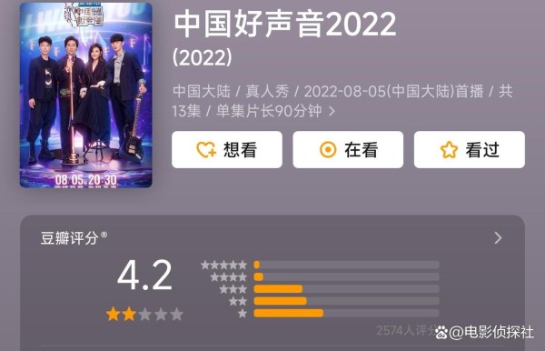 不过即便如此,本届《中国好声音》也创下了尴尬历史,作为国内一个老牌综艺,《中国好声音》过往的辉煌相信很多人仍记忆犹新,不过本届好声音以4.2分的评分成为了历届好声音口碑最差的一年。