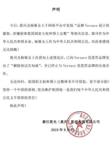 杨幂工作室凌晨声明:范思哲所设计服装涉嫌损害国家主权,已停止与其合作