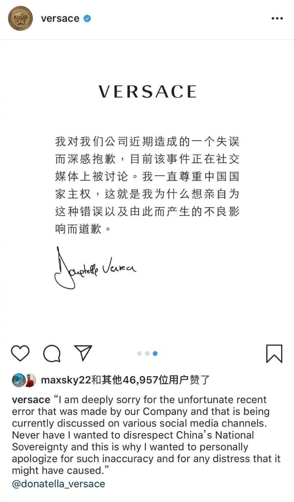 这也是继2018年11月,杜嘉班纳辱华事件后,国际奢侈品牌对我国领土完整和国家尊严又一起赤裸裸的挑衅。当时,章子怡、陈坤等知名明星,毫不客气地回绝了谓“D&G大秀”活动的邀请。原本和该品牌有合作关系的王俊凯、迪丽热巴等新生代艺人,也迅速和该品牌公开直接地划清界限,直接解约,终止合作。