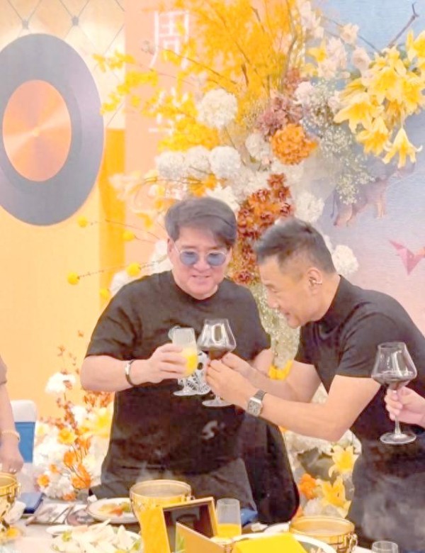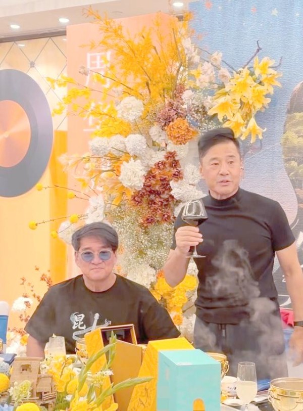 于荣光性格直爽,他主动端起桌上的红酒杯,自斟半杯。而周华健则以果汁代替,作为歌手,保护嗓子是他的职业要求,这一点他始终恪守。于荣光起身,举杯向周华健致意,虽话语内容未明,但从他的神情与举动中,不难感受到两人间深厚的情谊与对过往共同经历的珍视。