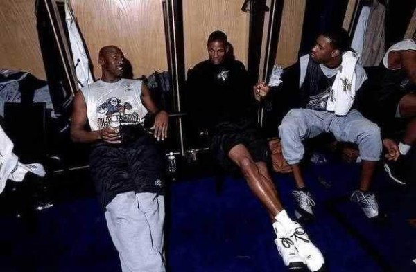 乔丹虽然被菜鸟赛季的艾弗森晃过,然而对这个1.83米的小个子状元,确是由衷的喜爱。老爷子十分欣赏艾弗森身上以一己之力独抗群雄的个人英雄主义情节,从合影我们也来看出来,乔丹非常亲切的搂着艾弗森,而同是96一代翘楚的马布里,只能羡慕的站在一边!