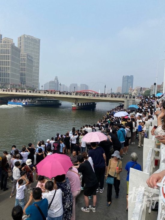 爆火之后的狮子林桥成了天津著名打卡点和网红“秀场”,周末更是人山人海。
