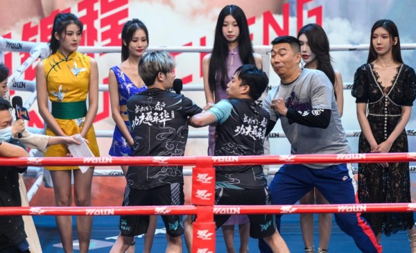 在这一次功夫嘉年华的发布会过程中,人气主播童锦程因为认识不少妹子,所以在上擂台的时候,身后也是站了不少漂亮的小姐姐为其助威。但是耀扬则不走寻常路,直接上台牵了一只狗来暗示童锦程是“狗东西”。不过,不管是童锦程的小姐姐应援团还是耀扬的狗,并没有让彼此生气。但是随后,童锦程却提到了台下到场的西瓜妹妹也是在为他应援的时候,耀扬却直接破防,不仅大打出手同时还表示,“西瓜妹妹是他在虎牙第一个喜欢的人,但她却跟童锦程去游西湖了,自己相当不爽。”于是,在耀扬的推搡之下,童锦程也是给予了反击,现场可以说是一片热闹,裁判跟工作人员差点拉不住他们。