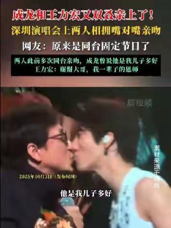 68岁成龙47岁王力宏“父子吻”背后的营销迷思:明星互动何时越界?