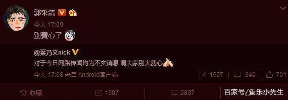 两人当然是没有恋爱的,在这个消息成为关注点不久,郭采洁的经纪人就发文辟谣,“对于今日网路传闻均为不实消息,请大家别太费心”而郭采洁也在第一时间转发,可见与古天乐的恋情绝对是假的,不过,不少的网友也坦言两人并不是很合适。