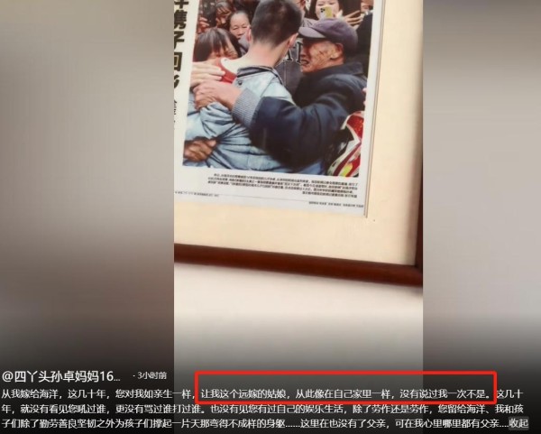 更微妙的是,孙卓妈妈彭四英在同一天发布视频,感谢公公几十年来"待她如亲生女儿",这时间点的巧合让人不得不产生联想。
