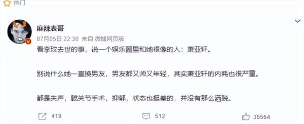 的确,李玟的去世,让不少网友想到了萧亚轩,她们之所以能成为好友,正是因为两人的经历都有相同之处,萧亚轩也患有抑郁症,持续接受治疗当中,去年也做了髋关节手术、正在度过艰难的康复期,也曾失声过,险些与自己的音乐梦告别。感情路上看似洒脱,男友都是小鲜肉,但每一段感情都以结束告终。