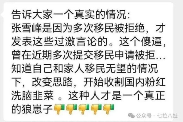 另有网友透露,身价不菲的张雪峰曾多次计划移民国外却未成功,这进一步加剧了公众对其“言行一致”的怀疑。